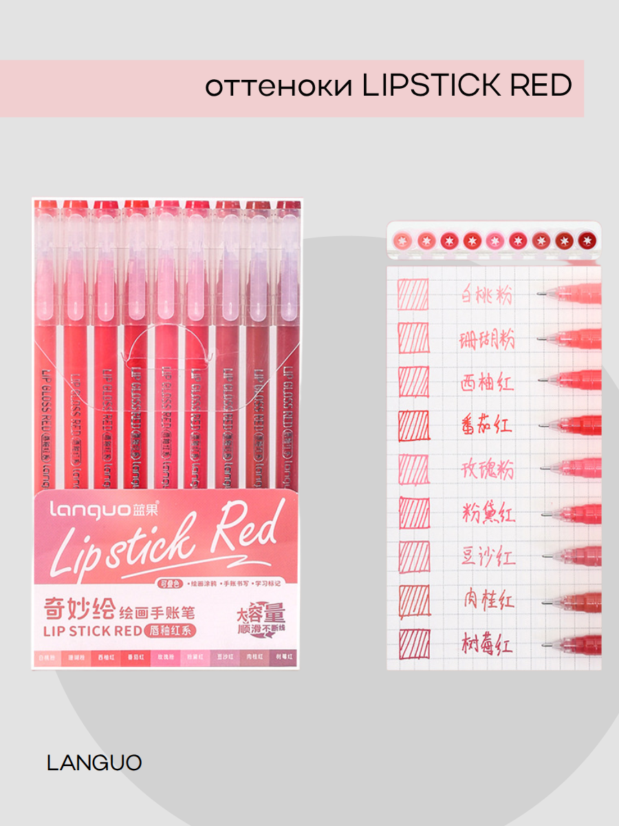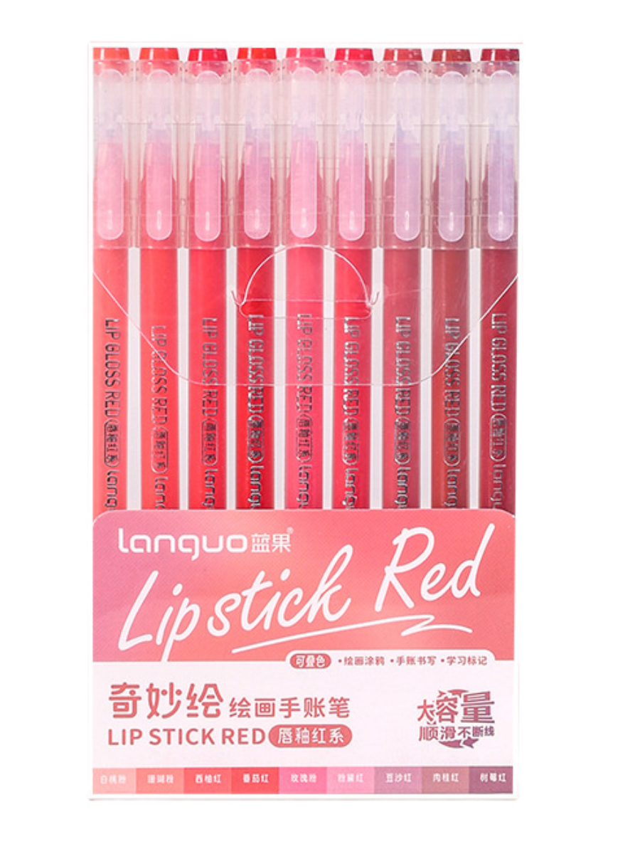 Ручки гелевые набор- 9 цв. DH-267 "Красные" 0,6мм, игольчатый стержень, прозрачный корпус, в упаковке ПВХ LG-D0566