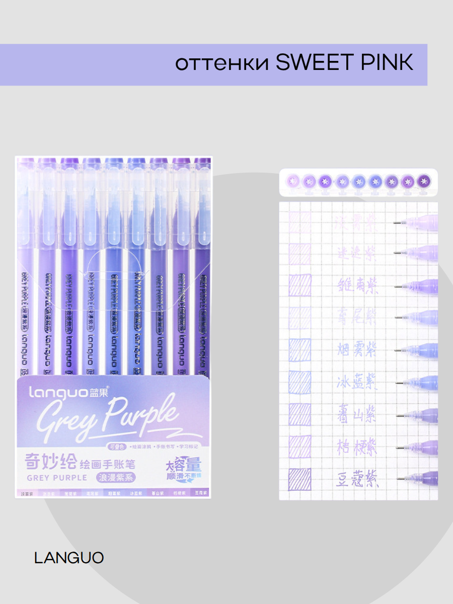 Ручки гелевые набор- 9 цв. DO-588 "Фиолетовые" 0,6мм, игольчатый стержень, прозрачный корпус, в уп ПВХ LG-D0575 335635