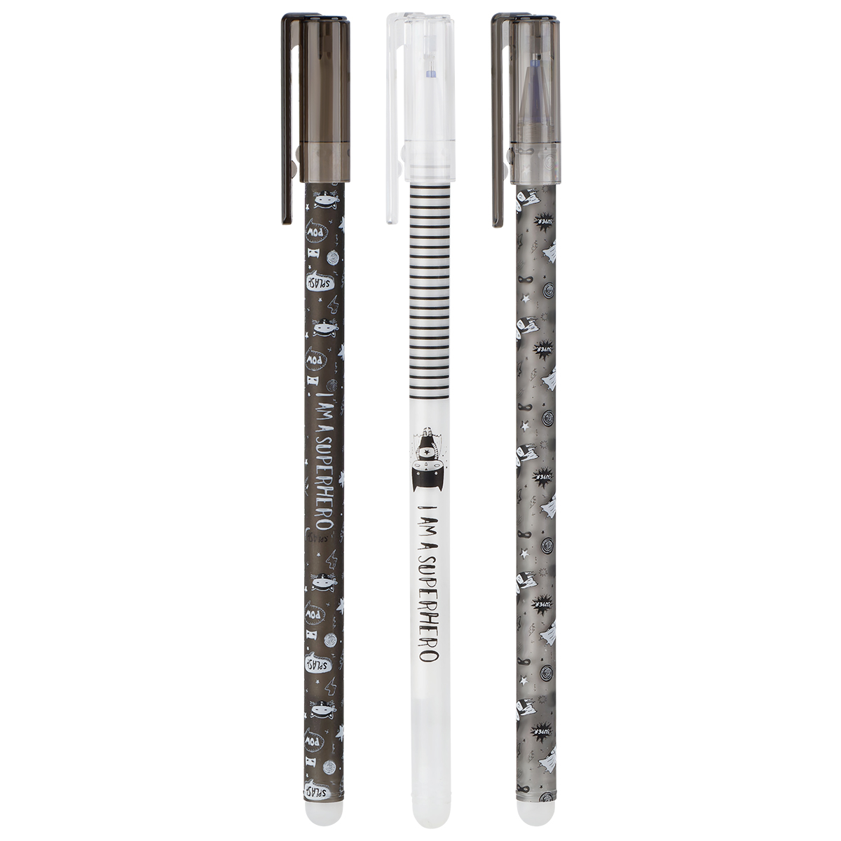 Описание: Гелевая стираемая ручка MESHU "Superhero" – это яркий дизайн с уникальными стираемыми чернилами внутри. Диаметр игольчатого пишущего узла – 0,5 мм, благодаря чему получается тонкая и аккуратная линия. Гелевые чернила синего цвета не только ярко пишут на бумаге, но и при воздействии температуры становятся невидимыми. Достаточно потереть написанное ластиком на кончике ручки. Обесцвеченные чернила проявляются при низкой температуре. Благодаря колпачку с клипом можно закрепить ручку на одежде или тетради.