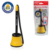 Ручка шариковая настольная BRAUBERG "СТЕНД-ПЕН N1", масл.основа, на пружинке, корп чер/желт, 141887,син