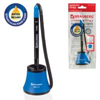 Ручка шариковая настольная масляная BRAUBERG "Стенд-Пен №1", корпус черный/синий, узел 0,7 мм, синяя, 141884