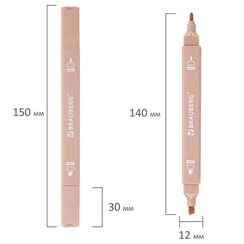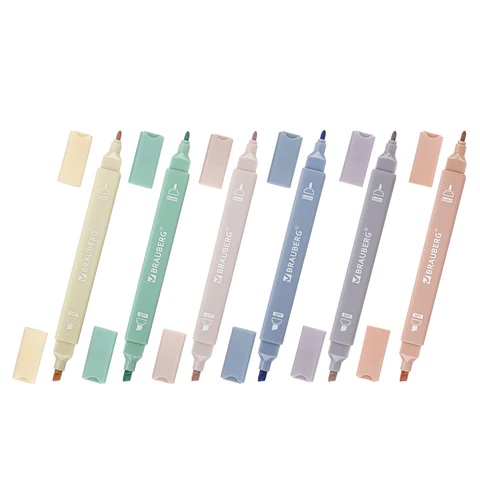 Двусторонние текстовыделители BRAUBERG "Morandi" предназначены для выделения текста на бумаге любого типа. Идеально подходят для скетчинга, а также решения учебных, домашних и офисных задач.В наборе 6 двусторонних текстовыделителей цветов моранди – миндальный, кирпично-розовый, темный серовато-синий, льняной, пыльно-зеленый, кремовый. Нежные и приглушенные цвета Моранди позволяют создать мягкие переходы и равномерно подчеркнуть необходимую информацию в тексте. Цвет корпуса соответствует цвету чернил.Текстовыделители имеют корпус прямоугольной формы диаметром 12 мм. Одна сторона имеет мягкий скошенный наконечник с линией письма от 1 до 5 мм, что обеспечивает ровное, непрерывное нанесение при работе с текстом, напечатанным мелким шрифтом, или таблицами. Вторая сторона имеет пулевидный наконечник, с помощью которого можно рисовать или закрашивать различные рисунки или надписи.Благодаря особой водной основе чернил текстовыделители не высыхают без колпачка в течение 8 часов. Текстовыделители обладают экономным расходом чернил, не портят бумагу, не смазывают текст и не просвечиваются.Выделяйте важное, структурируйте информацию, читайте с комфортом – в этом вам поможет набор текстовыделителей BRAUBERG "Morandi"!