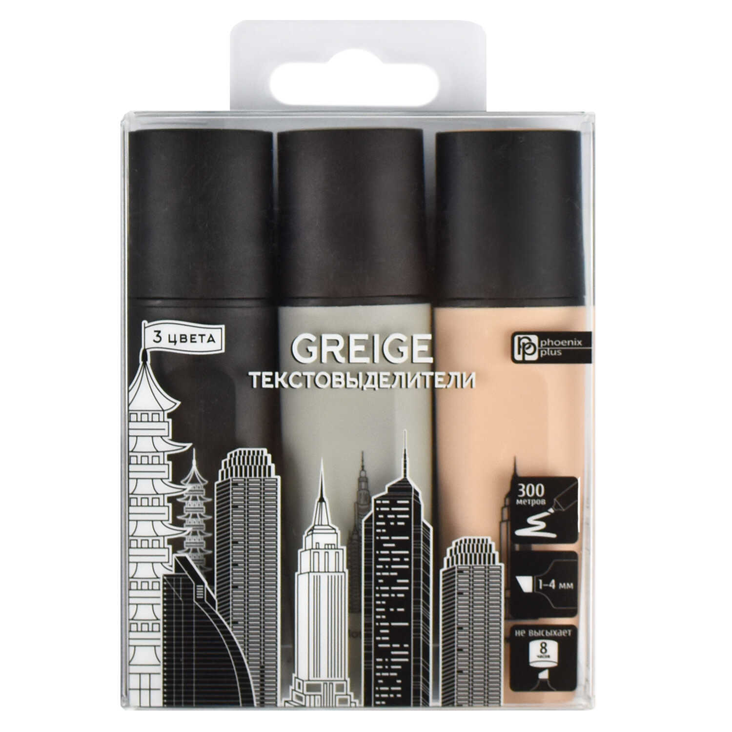Набор текстовыделителей арт. 64537 / 24 ГРЕЙДЖ (3 цвета (штуки) в наборе, размер: 8,5х10,8х1,8 см, полипропилен, фибра (полиэтилен), форма наконечника: скошенная, отделка: УФ-печать, ПЭТ-коробка с европодвесом).