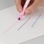 Чернила на водной основе не покрывают поверхность бумаги плотным слоем, но при этом хорошо выделяют значимые фрагменты текста. Скошенный наконечник позволяет регулировать толщину линии от 1 до 4 мм: можно подчёркивать записи тонкой линией или закрашивать всю строку одним движением.