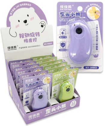 Ластик DI-682 "Bear" 65х35х20мм, фигурный, в пластиковом корпусе, цвета ассорти, в блистере WX-99903