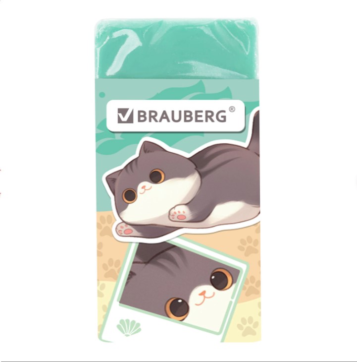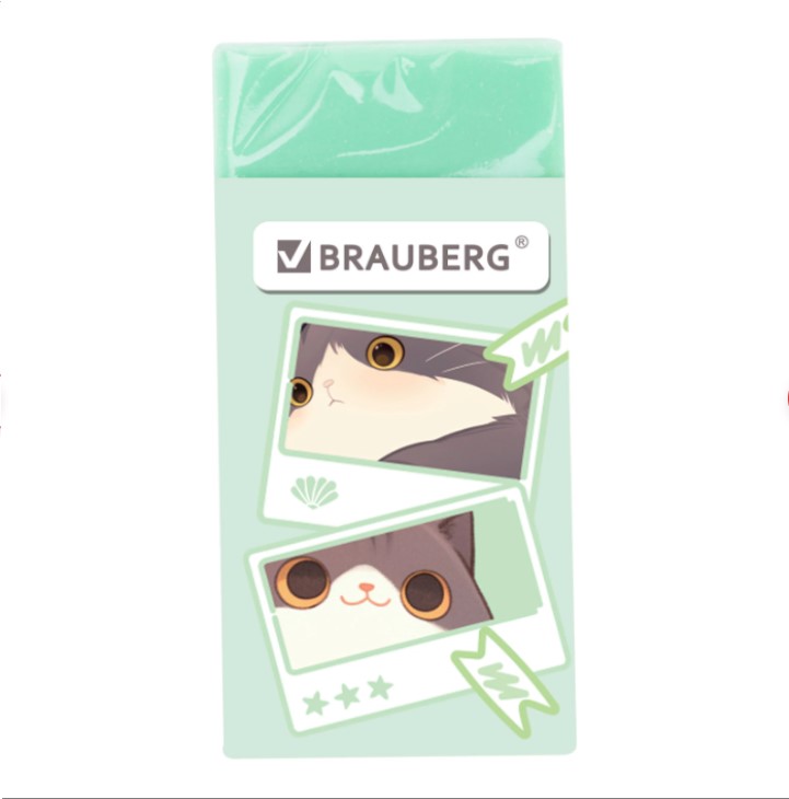 Ластик BRAUBERG "МИЛЫЕ КОТЫ" предназначен для удаления надписей, сделанных чернографитным карандашом. Изготовлен из современного материала – экологичного ПВХ. Картонный держатель с изображением забавных играющих котов поднимет настроение и поможет сохранить ластик чистым. Имеет прямоугольную форму, выполнен в четырёх вариантах цвета . Размер – 50х24х10 мм.