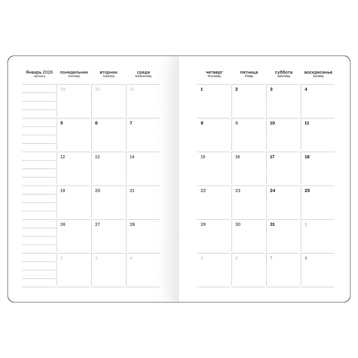 Ежедневник датированный на 2026 год BG серии "Monochrome" - ваше личное пространство для вдохновения и креативности, где каждая страница помогает делать шаги к успеху с лёгкостью и стилем. Ничего лишнего — только четкие линии и утонченная элегантность, которые позволят сосредоточиться на истинных целях.