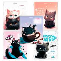 Тетрадь, 48 л, клетка, арт. 68551/ 5 ЧЕРНЫЙ КОТ /А5+, мягкий переплёт (2 скобы), обложка - выборочный ТВИН лак, мелованный картон 190 г/м