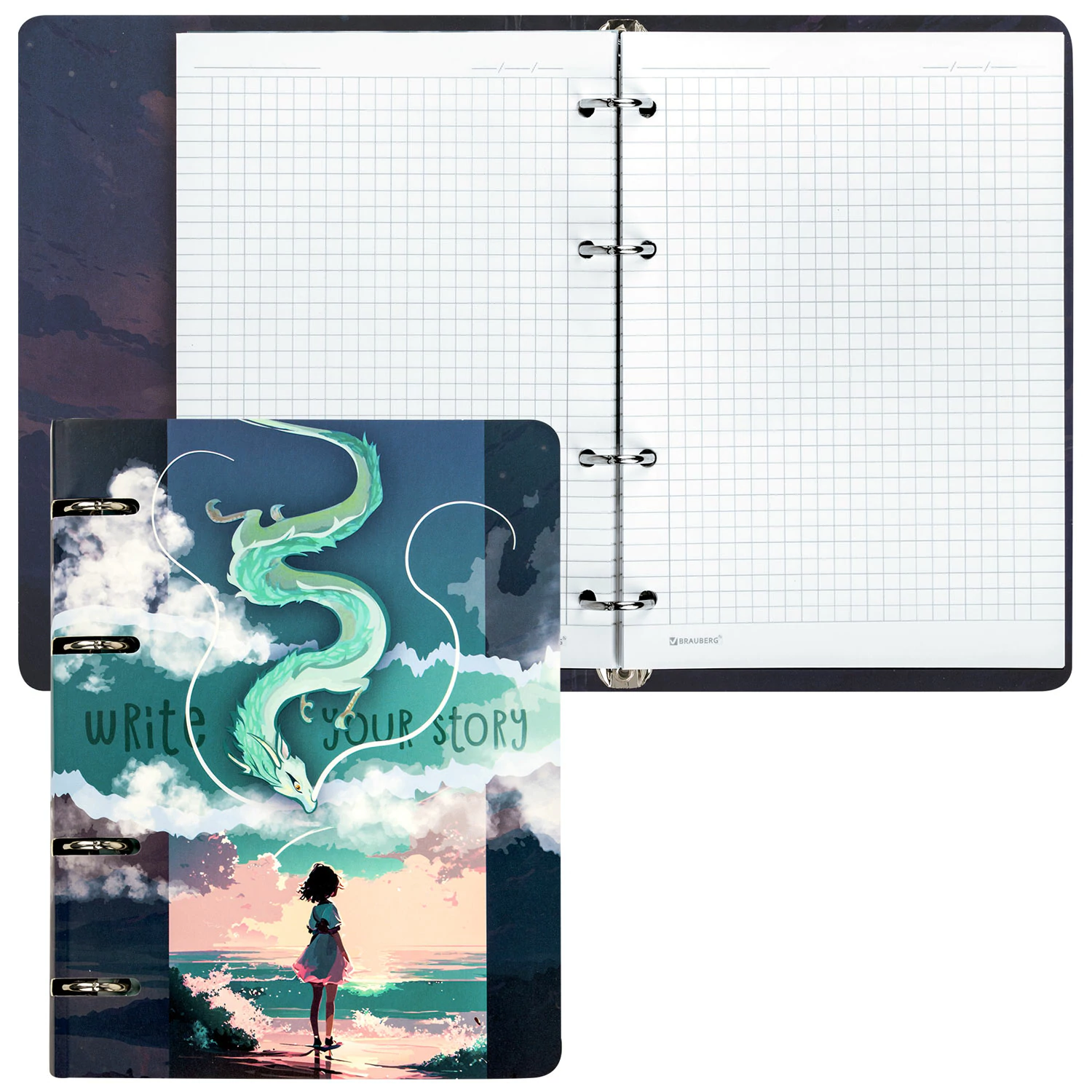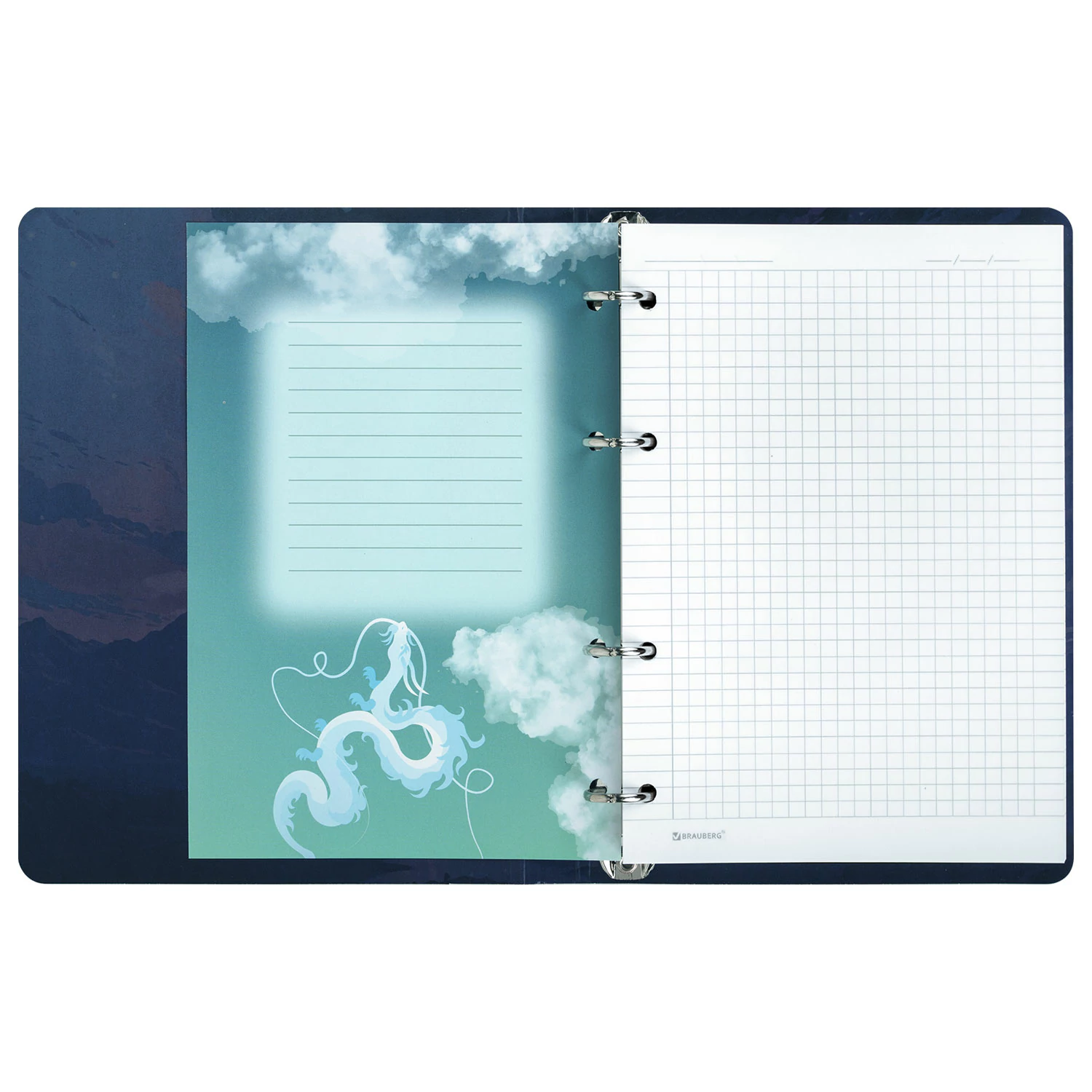 Удобная, практичная тетрадь BRAUBERG для учебы и работы со сменным блоком и гибкой ламинированной обложкой.Блок состоит из 120 листов офсетной бумаги белого цвета плотностью 60 г/м2. Линовка – клетка. Обложка выполнена из плотного слим-картона с высечкой под кольцевой механизм, имеет цветной форзац и покрытие матовой пленкой с отделкой выборочным лаком.Формат А5 является стандартным, поэтому тетрадь удобно носить в рюкзаке/ранце или папке. Оборудована кольцевым механизмом с 4 кольцами для подшивки сменных блоков, что позволит брать на учебу/работу всего одну тетрадь с возможностью добавлять и менять листы.