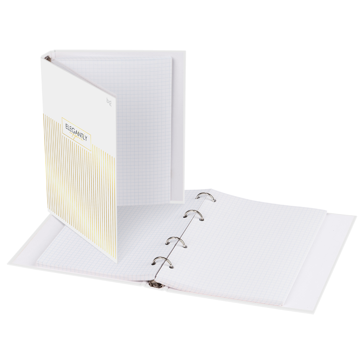 Тетрадь на кольцах BG формата А5 (215*170 мм) – незаменимый помощник в офисе и учёбе и удобна для большого объёма записей. Внутренний блок – 120 листов офсетной бумаги плотностью 60 г/м², белизна – 100%, линовка – клетка. Тетрадь имеет кольцевой механизм для быстрой смены или добавления листов, состоящий из 4 колец. Обложка изготовлена из твёрдого картона с прямым корешком. Тетрадь выполнена в стильном дизайне. Упакована в термоусадочную плёнку. • Формат: А5 (215*170 мм); • Кол-во листов: 120; • Линовка: клетка; • Форма корешка: прямоугольная; • Материал обложки: твёрдый картон