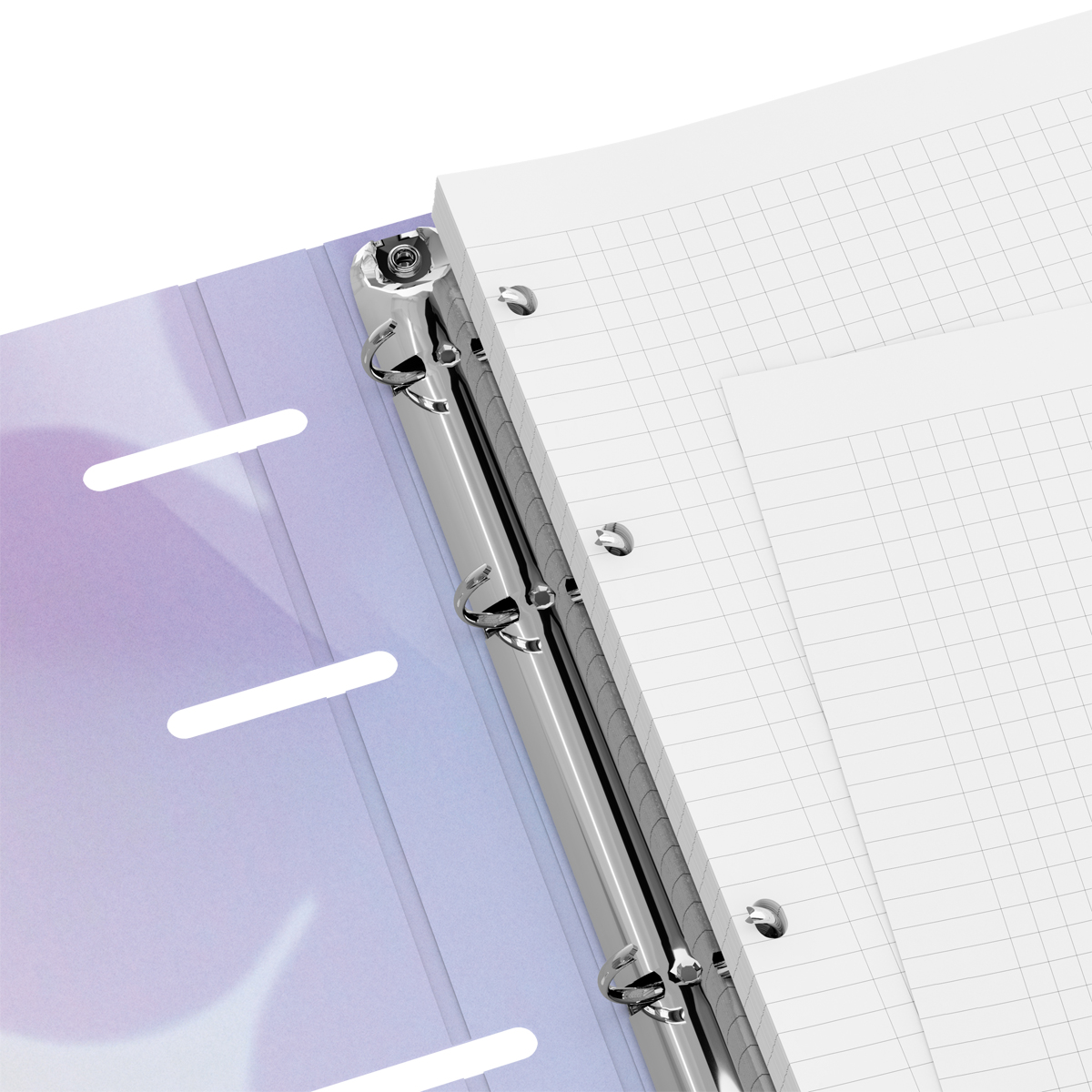 Тетрадь на кольцах BG формата А5 подходит для большого объёма записей. Эффектный дизайн обложки и форзаца поднимет настроение на учёбе или работе. Размер — 160*212 мм. Внутренний блок состоит из 120 белых листов с линовкой в клетку. Плотность офсетной бумаги — 60-65 г/м2. Белизна — 100%. Механизм из 4 колец обеспечивает быструю смену или добавление листов при необходимости. Обложка сделана из плотного картона, который надёжно защищает внутренний блок. Отделка обложки — soft-touch ламинация и тиснение фольгой. Тетрадь упакована в картон и индивидуальный пакет.
