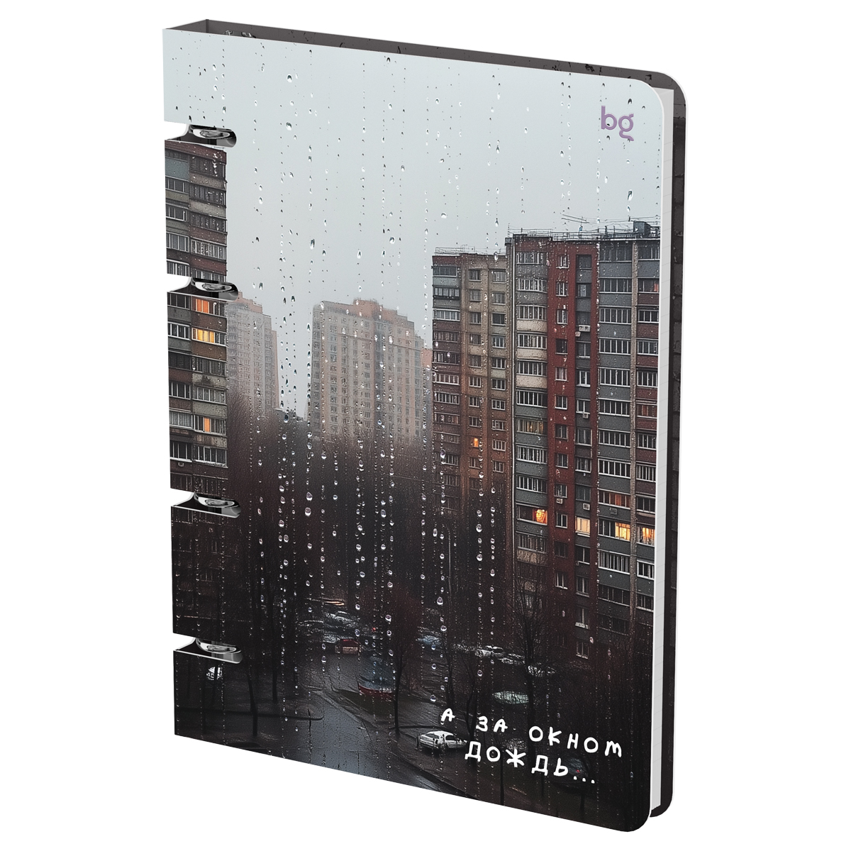 Тетрадь на кольцах BG «За окном» формата А5 подходит для большого объёма записей. Эффектный дизайн обложки и форзаца поднимет настроение на учёбе или работе. Размер — 160*212 мм. Внутренний блок состоит из 120 белых листов с линовкой в клетку. Плотность офсетной бумаги — 60-65 г/м2. Белизна — 100%. Механизм из 4 колец обеспечивает быструю смену или добавление листов при необходимости. Обложка сделана из плотного картона, который надёжно защищает внутренний блок. Отделка обложки — матовая ламинация. Тетрадь упакована в картон и индивидуальный пакет.