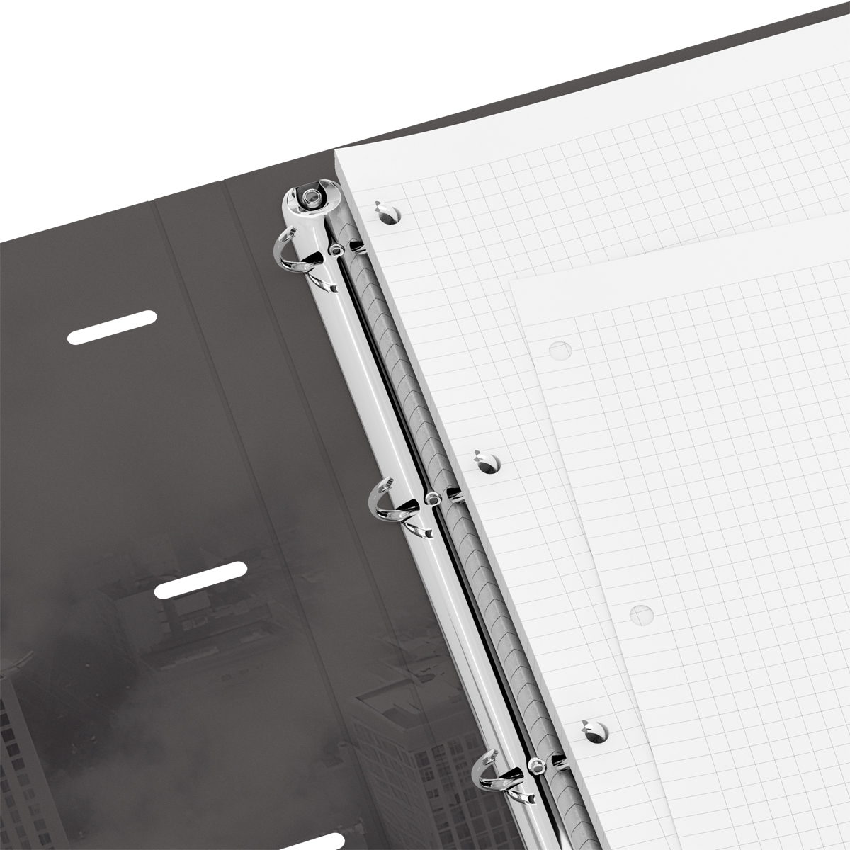 Тетрадь на кольцах BG А4 формата (240*310 мм) подходит для большого объёма записей. Эффектный дизайн обложки и форзаца поднимет настроение на учёбе или работе. Внутренний блок состоит из 120 белых листов с линовкой в клетку. Плотность офсетной бумаги — 60-65 г/м2. Белизна — 100%. Кольцевой механизм из 4 колец обеспечивает быструю смену или добавление листов при необходимости. Тетрадь сделана из плотного картона, который надёжно защищает внутренний блок. Отделка обложки — матовая ламинация. Тетрадь упакована в картон и индивидуальный пакет.