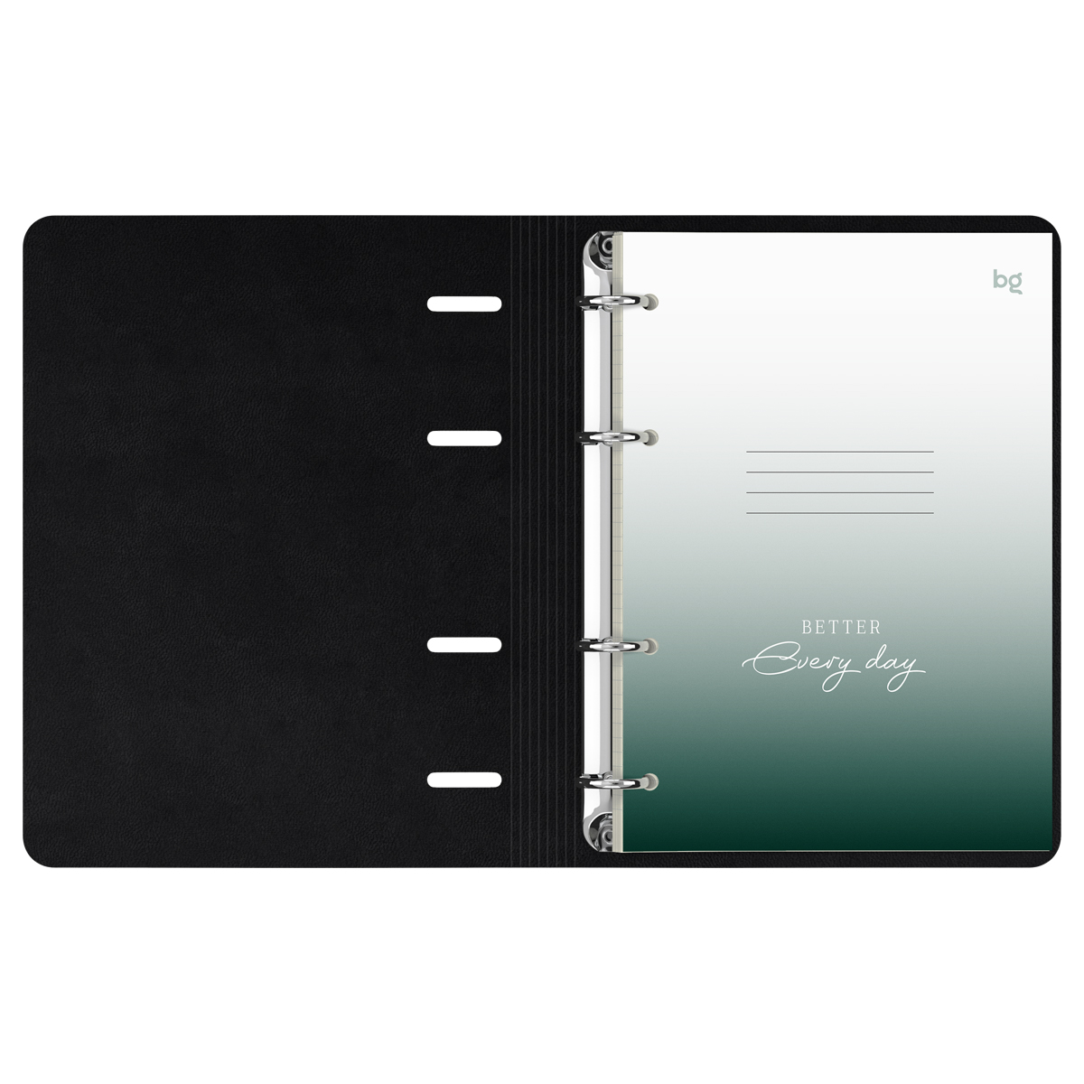 Общая тетрадь на кольцах «Моно. Зеленый» от bg — это стильный и функциональный инструмент для учёбы или работы. Благодаря кольцевому механизму легко добавлять и вынимать листы. Тетрадь можно адаптировать под любые задачи. Она подходит для большого объёма записей. Изделие в формате А5 легко взять с собой куда угодно. Тетрадь поместится в папку или рюкзак. Внутренний блок состоит из 120 листов тонированной бумаги плотностью 70 г/м². Обложка выполнена из высококачественной экокожи. В отделке используется тиснение фольгой. Тип линовки — клетка. Минималистичный дизайн с мотивационной надписью на обложке оценят те, кто выбирает изделия по принципу «ничего лишнего». Изделие упаковано в пакет, который защищает от повреждений при транспортировке.