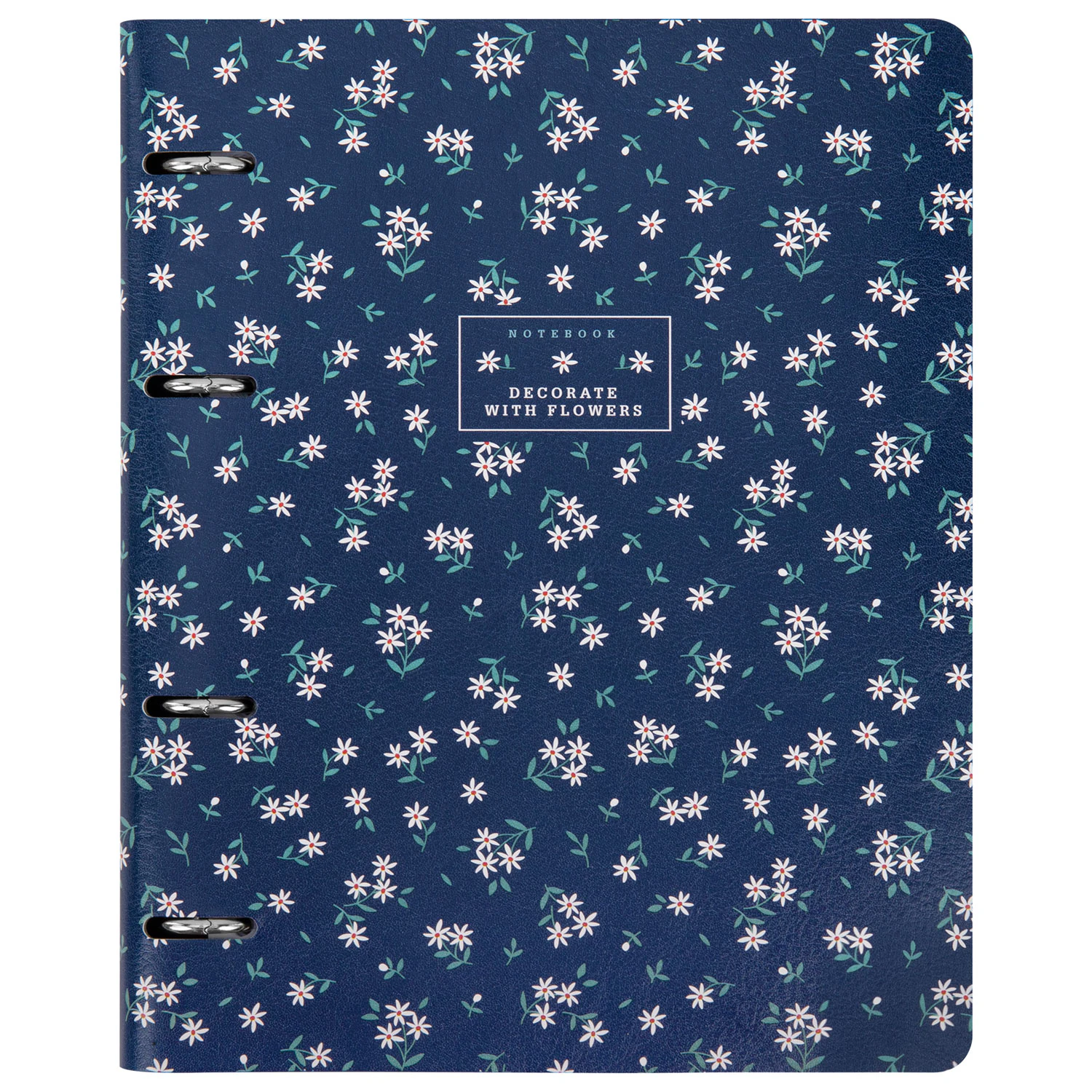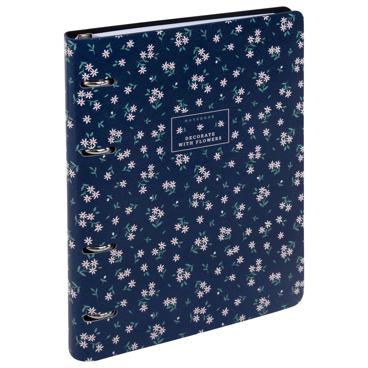 Тетрадь на кольцах А5 175х215мм, 120л, под кожу, BRAUBERG VISTA, Цветочный паттер