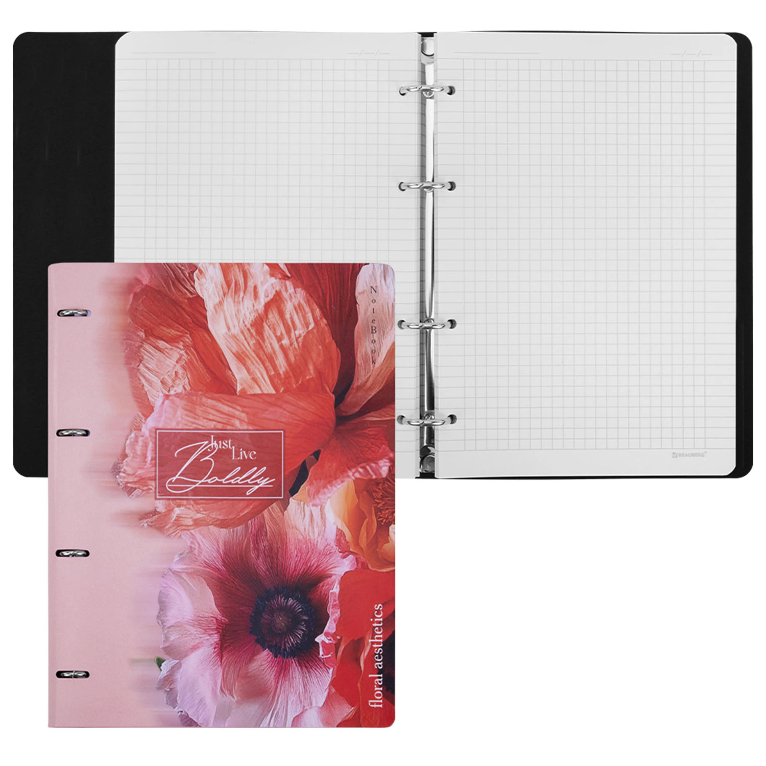 Тетрадь на кольцах БОЛЬШАЯ А4 240х310мм 120л, под кожу, BRAUBERG VISTA, Bloom