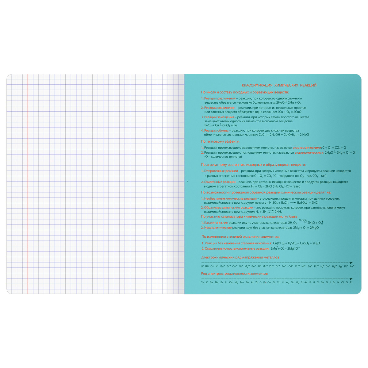 Предметная тетрадь «Химия» серии «Информационное поле» — отличный выбор для учёбы. Внутренний блок включает 48 листов офсетной бумаги плотностью 60 г/м². Тип линовки — клетка с полями. Благодаря справочной информации на подкладных листах важные факты всегда будут под рукой. Компактный формат А5 позволяет носить тетрадь в папке, рюкзаке или шопере. Обложка изготовлена из мелованного картона, который защищает страницы от повреждений. В отделке используется выборочный лак. Благодаря "софт тач" ламинации тетрадь приятна на ощупь. Чёрные стильные обложки с детализированными элементами в тематике каждого предмета вдохновят школьников на поиск новых знаний. В серии — 12 тетрадей. • Количество листов: 48; • Линовка: клетка с полями; • Формат: А5; • Плотность бумаги: 60 г/м²; • Крепление: скрепка; • Материал обложки: мелованный картон; • Отделка обложки: "софт тач" ламинация, выборочный лак.