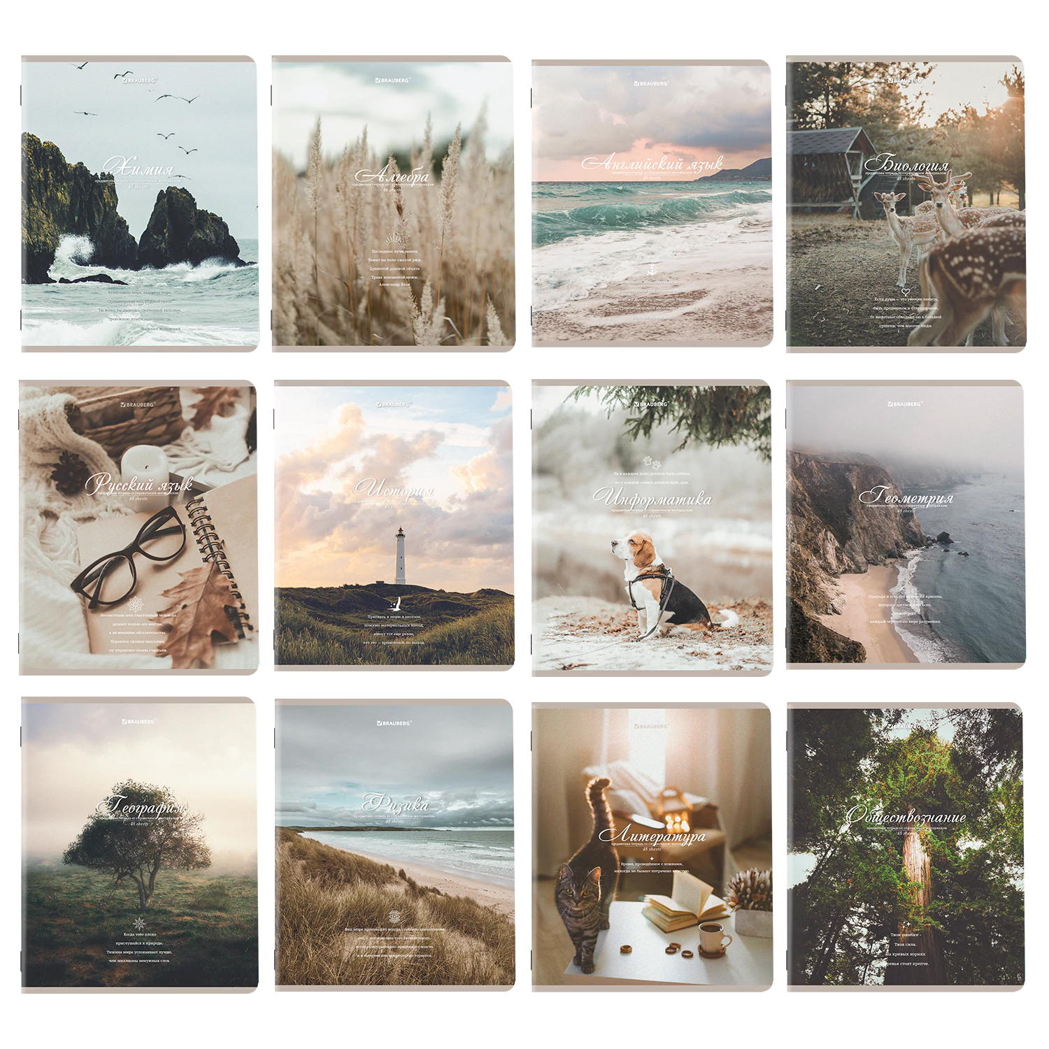 Предметные тетради BRAUBERG из серии "ESTHETICS" со справочным материалом предназначены для учащихся средних и старших классов.Обложка из импортного мелованного картона обеспечивает тетради долговечность. Ламинация SoftTouch обеспечивает обложке мягкий, бархатистый тактильный эффект.В комплекте 12 тетрадей: Алгебра, Английский язык, Биология, География, Геометрия, Обществознание, История, Информатика, Литература (в линию), Русский язык (в линию), Физика, Химия.Тетради формата А5 содержат 48 листов, изготовленных из высококачественной офсетной бумаги плотностью 60 г/м2, 100% белизны, с красными полями. Листы соединены скобами.Покупая предметные тетради BRAUBERG, вы приобретаете индивидуальность. Наличие подсказа сделает обучение легким и комфортным!