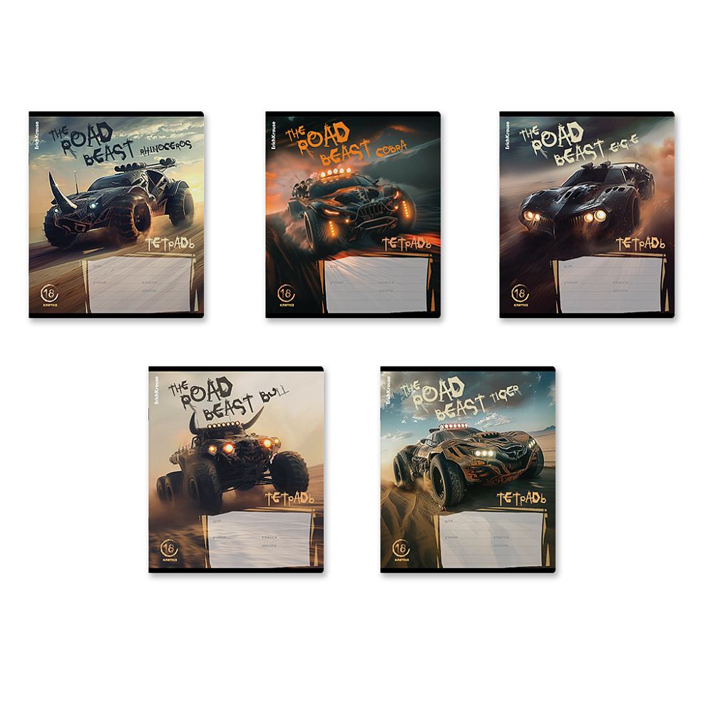 Тетрадь школьная ученическая ErichKrause Road Beast, 18 листов, клетка, выборочный УФ-лак 63268