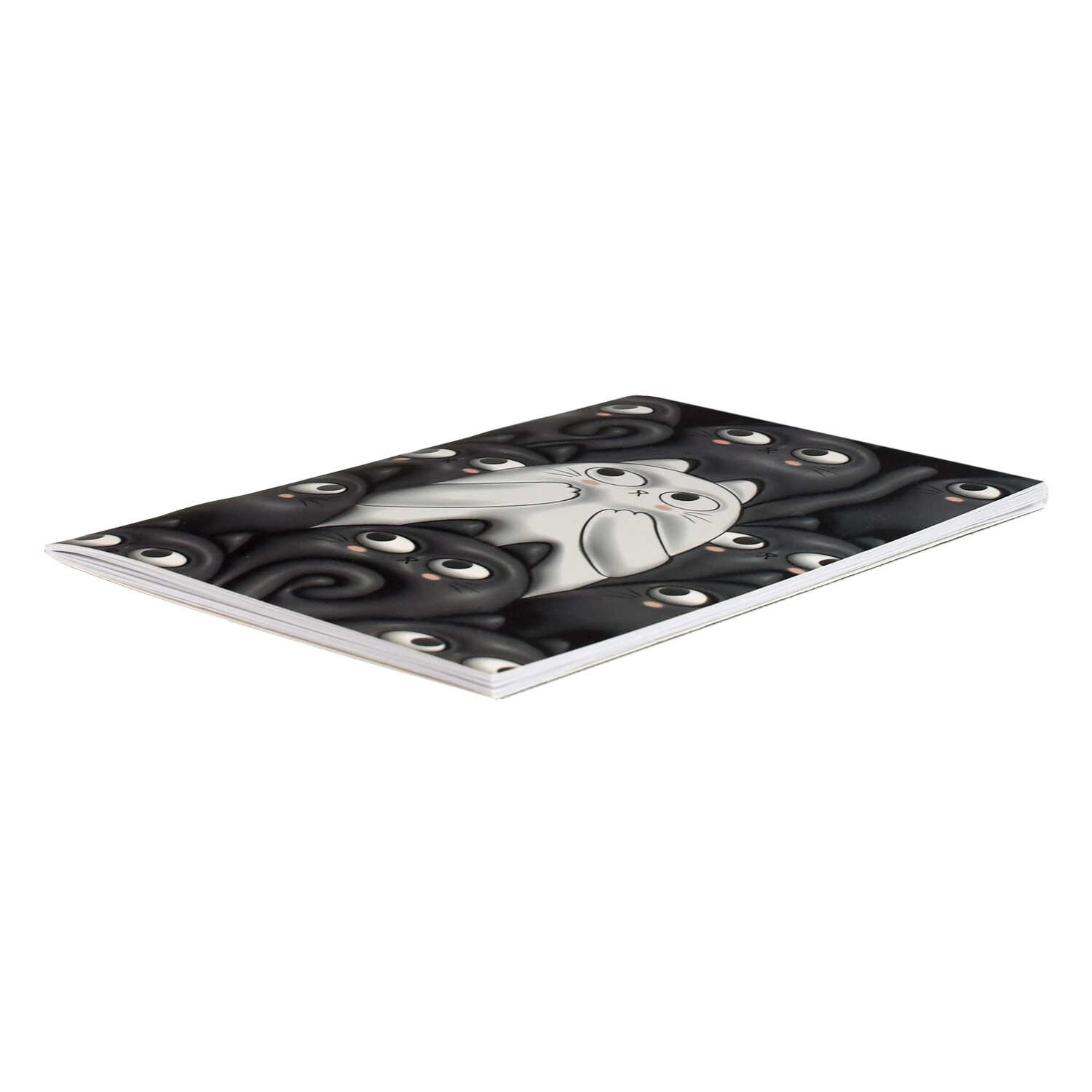 Тетрадь, 32 л. дизайнерский блок(клетка), арт. 70428/ 3D-КОТЫ/ 141х215 мм, А5 мягкий переплёт (2 скобы), мелованный картон 200 г/м², полноцветная печать, ламинация "софт-тач" вельвет, обложка - выборочный УФ-лак