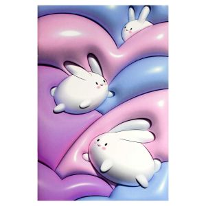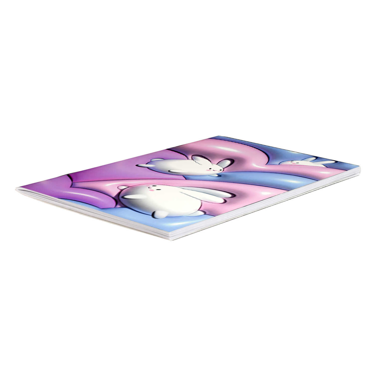 Тетрадь, 32 л. дизайнерский блок(клетка), арт. 70430/ 3D-КРОЛИКИ/ 141х215 мм, А5 мягкий переплёт (2 скобы), мелованный картон 200 г/м², полноцветная печать, ламинация "софт-тач" вельвет, обложка - выборочный УФ-лак