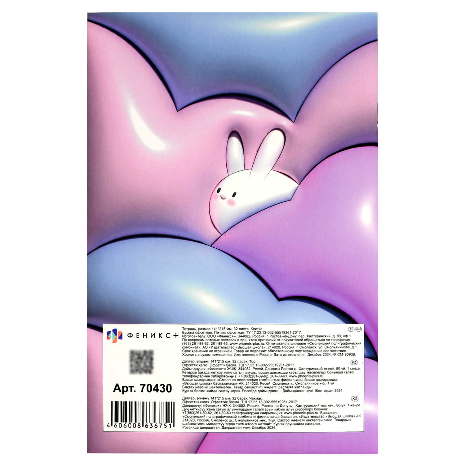 Тетрадь, 32 л. дизайнерский блок(клетка), арт. 70430/ 3D- КРОЛИКИ/ 141х215 мм, А5