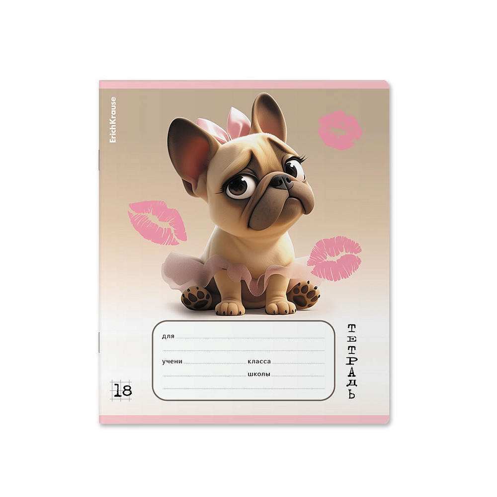 Тетрадь А5 18 л., ErichKrause Frenchie, 18 листов, клетка, выборочный УФ-лак