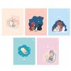 Тетрадь общая ученическая формата А5+ (170х203 мм). Обложка из высококачественного мелованного картона плотностью 190 г/м2. Отделка - матовая ламинация, выборочный УФ-лак. В блоке 48 листов в клетку с полями. Бумага офсетная плотностью 60 г/м2. Цвет линовки - синий. Скругленные уголки обложки и блока. Тип скрепления - скоба. Тетради разного дизайна упакованы в термоусадочную пленку по 5 штук.