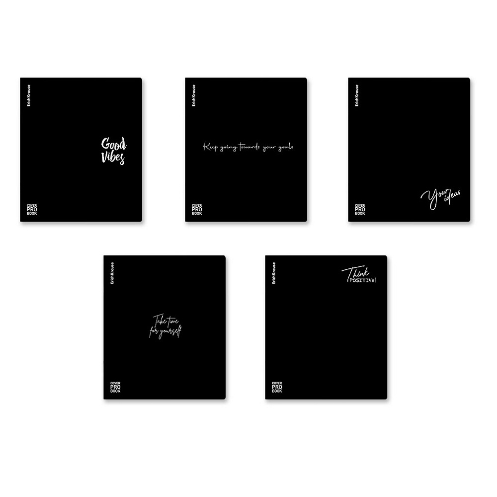 Тетрадь общая ученическая с пластиковой обложкой на скобе ErichKrause Words, черный, А5+, 48 листов, клетка_MIX-PACK