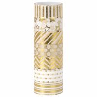 Клейкие WASHI-ленты для декора с фольгой ЗОЛОТИСТЫЕ, 15 мм х 3 м, 7 шт., рисовая бумага, ОСТРОВ СОКРОВИЩ, 661712