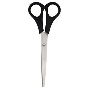 Ножницы офисные, длина 20 см, лезвия с заточкой, черные ручки, упакованы в ПВХ чехол с европодвесом