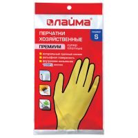 Перчатки хозяйственные латексные ЛАЙМА "Премиум", МНОГОРАЗОВЫЕ, хлопчатобумажное напыление, суперплотные, S (малый), 600570
