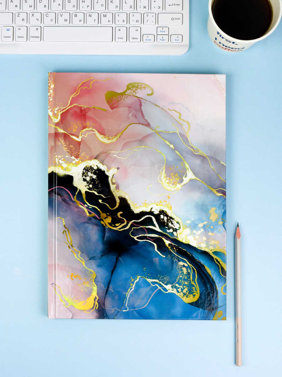 Тетрадь арт. 61694 ЗОЛОТЫЕ РАЗВОДЫ / А4, 96 л., твёрдый переплёт 7БЦ, полноцветная печать, глянцевая ламинация. Блок - белый офсет, 65 г/м², печать в одну краску, клетка