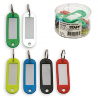 Бирки для ключей КОМПЛЕКТ 100 ШТ., длина 50 мм, инфо-окно 30х15 мм, АССОРТИ, STAFF, 237493