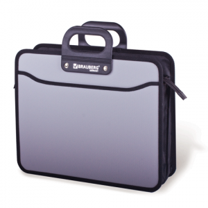 Портфель пластиковый для документов формата А4. Портфель содержит два внутренних отделения, закрывающихся на молнию, и одно внешнее. Внутри портфеля есть четыре кармана-сетки и два тканевых кармана для мелких предметов. — 3 отделения. — Фактура - "Бисер". — 6 внутренних карманов. — Замок-молния. — Увеличенная вместимость за счет расширения снизу. — Цвет - серый. — Размер - 39х31,5х12 см.