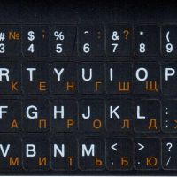 Наклейки на клавиатуру, рус(желтый)лат.(белый) , на черном фоне