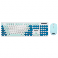 Набор беспроводной тихий: клавиатура 104 клавиши/мышь 1600 dpi SONNEN K-650 белый/мята/бирюз, 513953