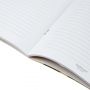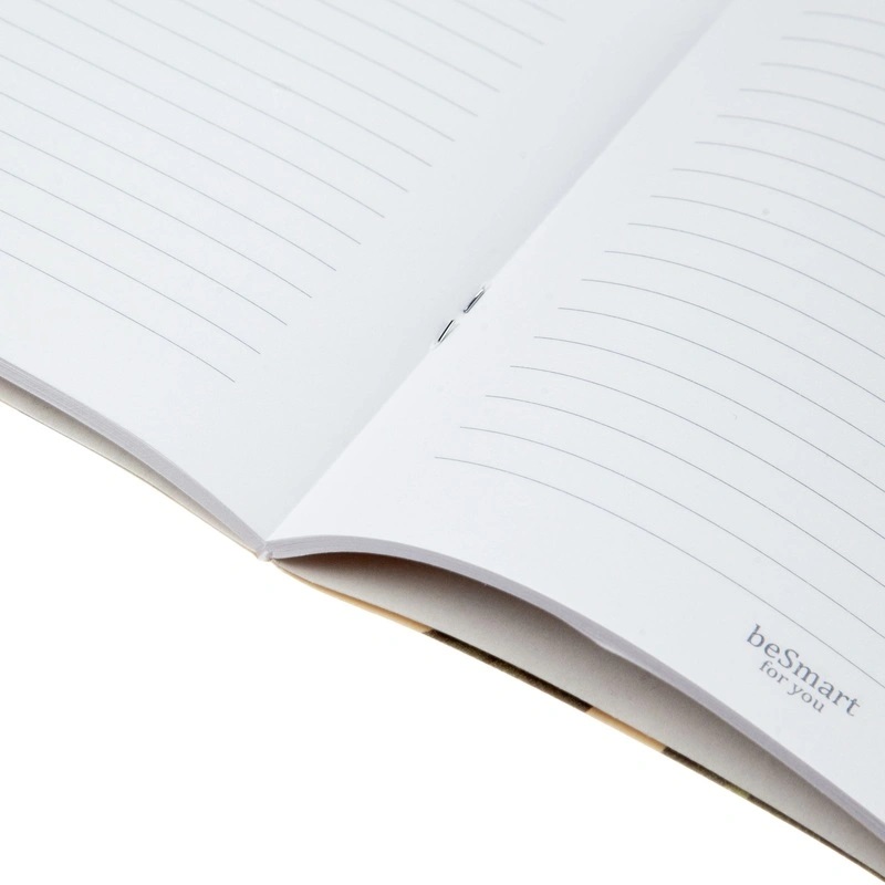 Внутренний блок включает 48 листов белой офсетной бумаги плотностью 65 г/кв. м. Листы разлинованы в линейку серого цвета, без полей, белизна бумаги составляет 100%. Перфорация отсутствует. Блокнот скреплён скрепками с расположением слева, что позволяет удобно перелистывать страницы. Изделие производится в России и поставляется по одной штуке в упаковке.