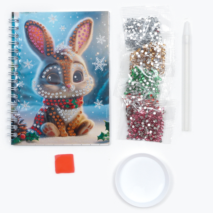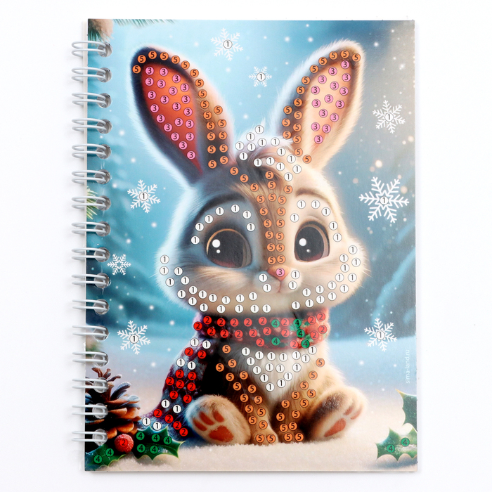 Алмазная мозаика на новый год с частичным заполнением для детей на блокноте «Зайка», 11?15 см, 48 листов, набор для творчества 10367599