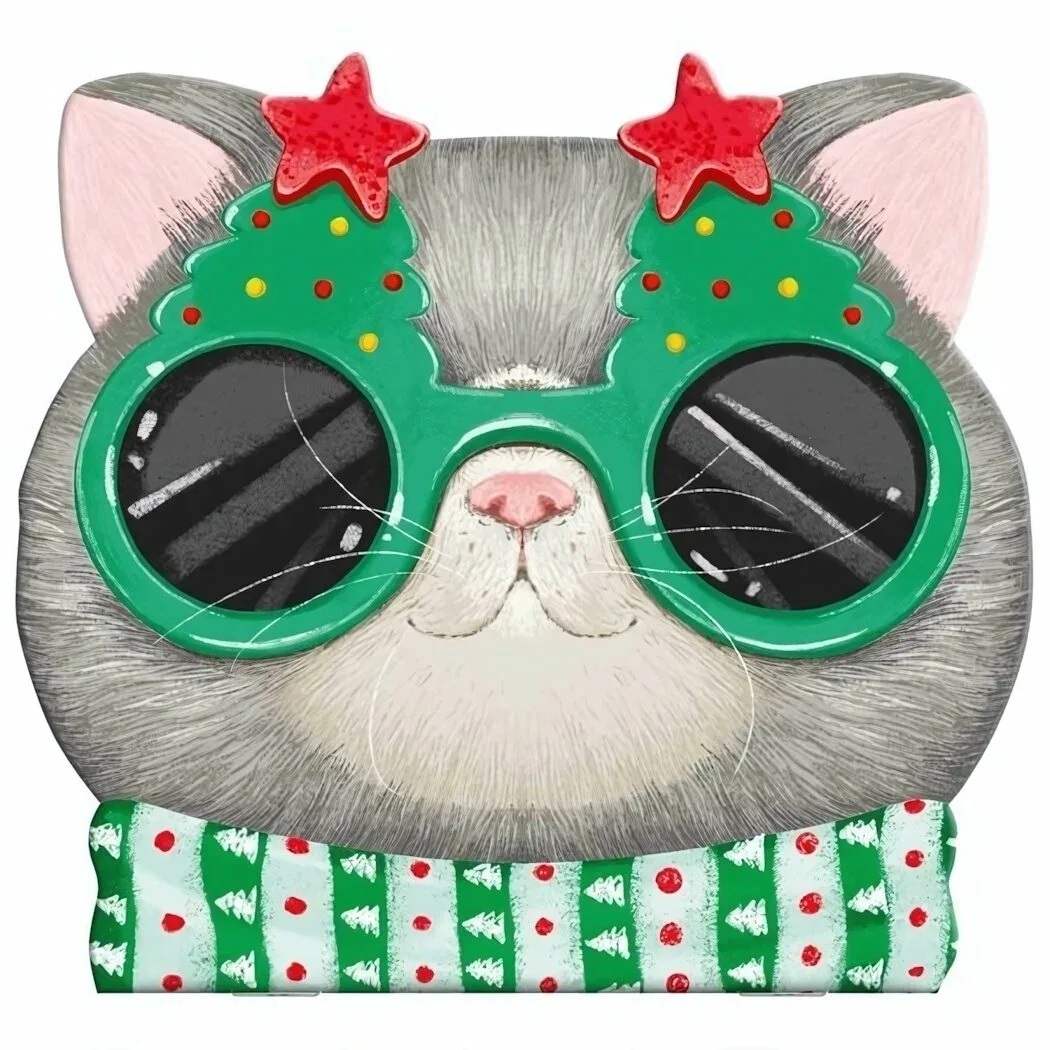 Блокнот, 120х117 мм, 30 листов, 69608/ 10 НОВОГОДНИЙ СЕРЫЙ КОТ /120х117 мм, фигурная вырубка, мягкий переплёт (1 скоба).