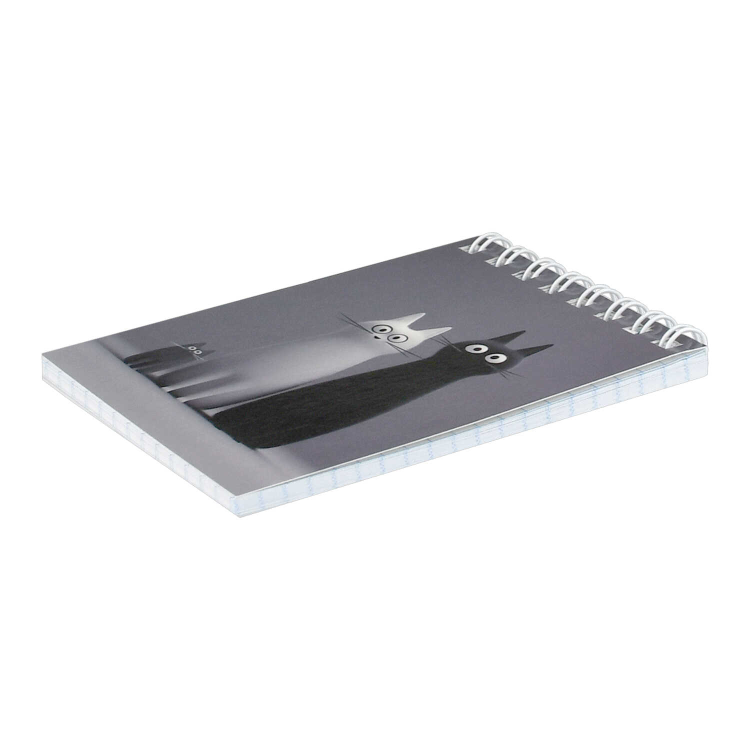 Блокнот, А7, 40 л, арт. 73410 ЧЕРНО-БЕЛЫЕ КОТЫ / Блок - белый офсет 65 г/м², клетка, гребень по короткой стороне, УФ-лак сплошной