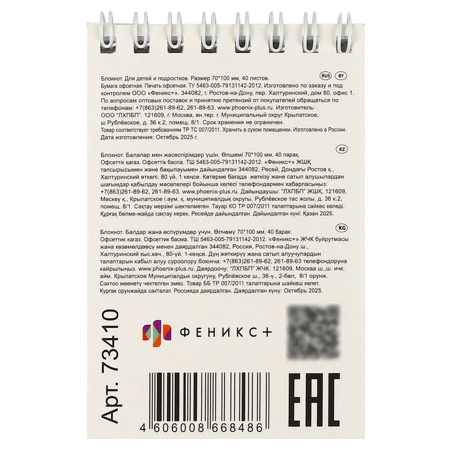 Блокнот, формат А7, 40 листов, ЧЕРНО_БЕЛЫН КОТЫ, гребень по короткой стороне, УФ-лак сплошной, клетка 73410