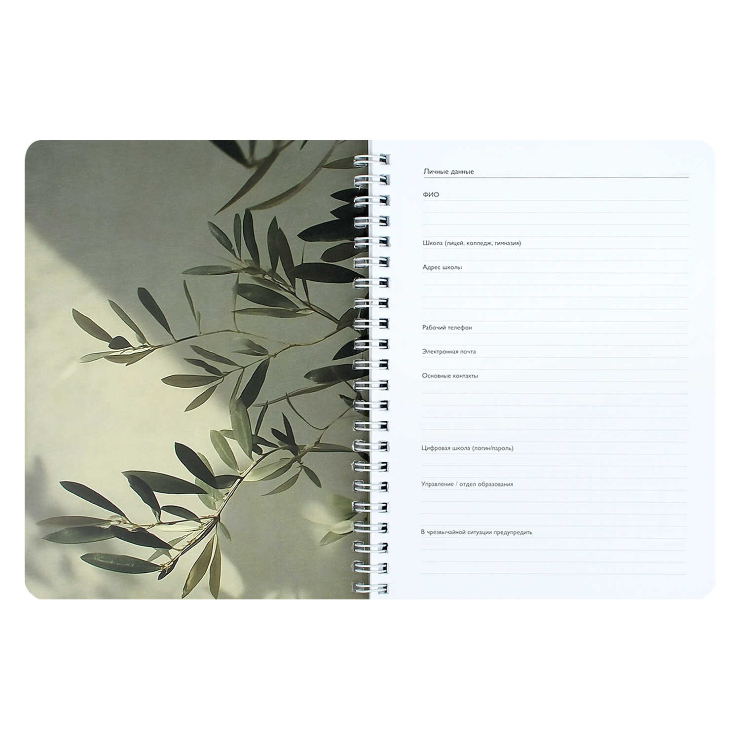 Записная книга учителя, преподавателя арт. 72634 ВЕТКА ЭВКАЛИПТА / А5, 64 л., гребень по длинной стороне, полноцветная печать (4+4), Блок - белый офсет, 80 г/м², печать в одну краску, пластиковая обложка