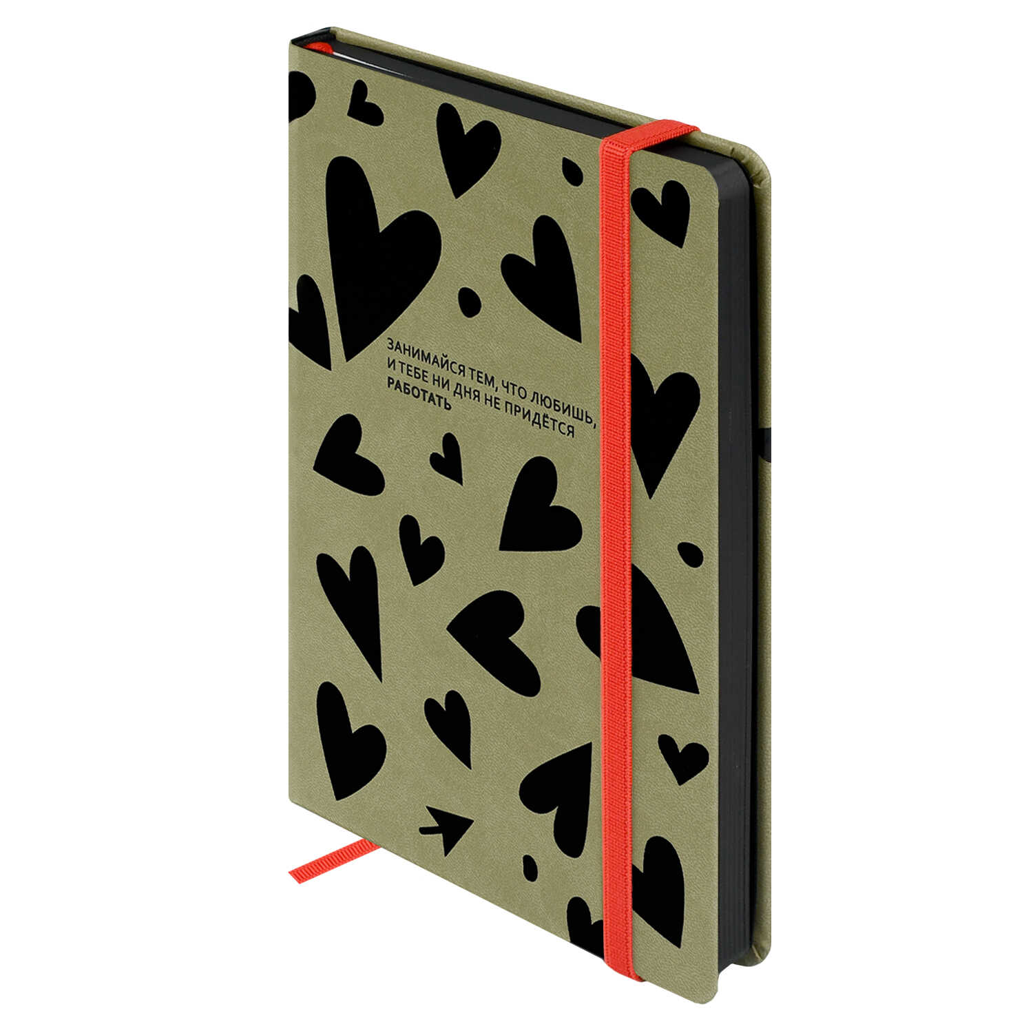 Записная книжка ESCALADA, А5, 120 л., арт. 70723/ 15 СЕРДЦА (кожзам: 140x205 мм, твёрдый переплёт, материал обложки: искусственная кожа "Виннер"; способ крепления блока: ниткошвейный; декор: печать шелкографией в одну краску; вн. блок: 120 л., белый офсет 70 г/м², печать в одну краску (линия), справочный материал: нет; перфорация углов блока: нет; отделка среза: окрашивание пантоном; закладка/-и: одно ляссе, каптал: есть; форзац: печать пантоном, особенности: застёжка-резинка, карман на форзаце; персонализация возможна: нет; индивидуальная упаковка: промостикер + ПЭТ-пакет)
