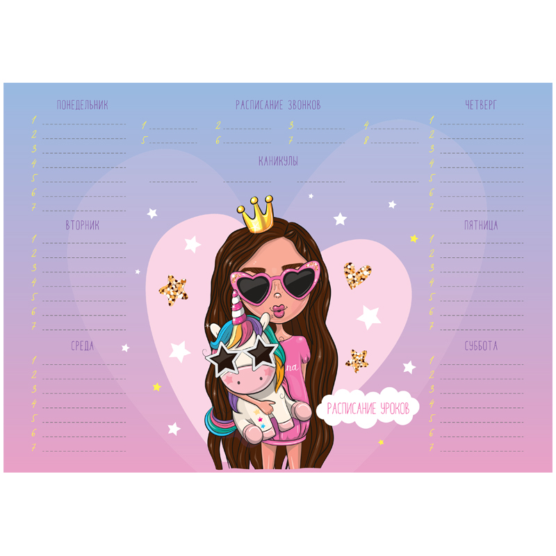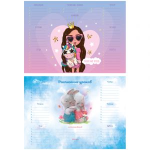 Чтобы правильно составить распорядок дня и рационально распределить время ребенка, необходимо определиться, какие элементы должны быть в нем отражены. Прежде всего это время на учебу в школе и подготовку домашнего задания в домашних условиях. В вопросе школьного планирования идеально подходит расписание уроков ArtSpace. Включает блок "Расписание звонков". Выполнено из плотного картона 190 г/м2 Ассорти из 2 дизайнов (10+10).