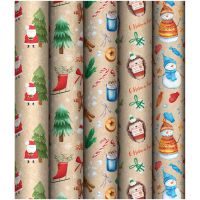 Упаковочная бумага крафт 70*100см, ArtSpace "Веселый праздник", 70г/м2, ассорти 5 дизайнов 302673