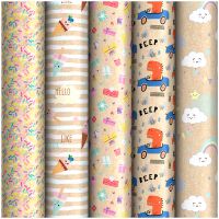 Упаковочная бумага крафт 70*100см, MESHU "Trendy", 70г/м2, ассорти 5 дизайнов 303798 ПБК100м_33581