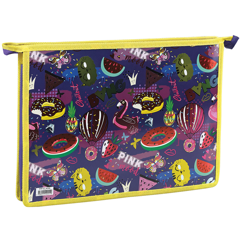 Удобная папка из плотного материала с красочным рисунком на молнии. Современный дизайн добавляет яркости и поднимает настроение.