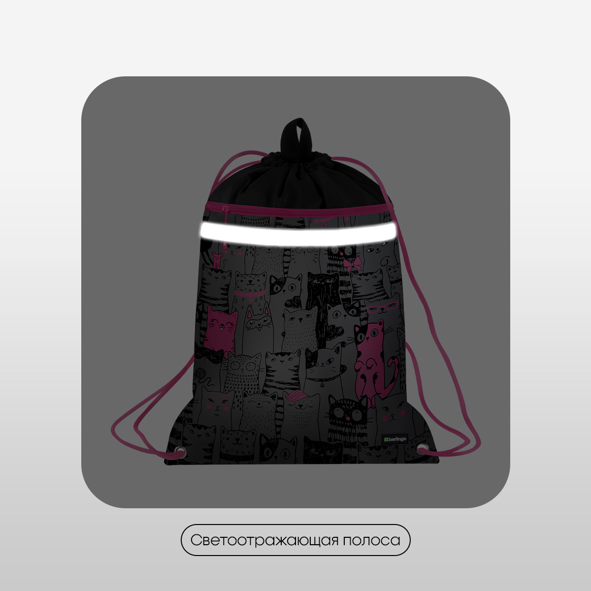 Мешок для обуви 1 отделение Berlingo "Happy Cats", 360*460мм, вентиляционная сеточка , светоотражающ 379493