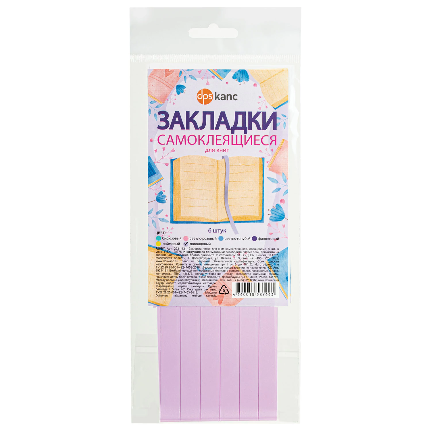 Закладки для книг САМОКЛЕЯЩИЕСЯ, КОМПЛЕКТ 6 шт., лавандовый, ДПС, 2921-131 116385